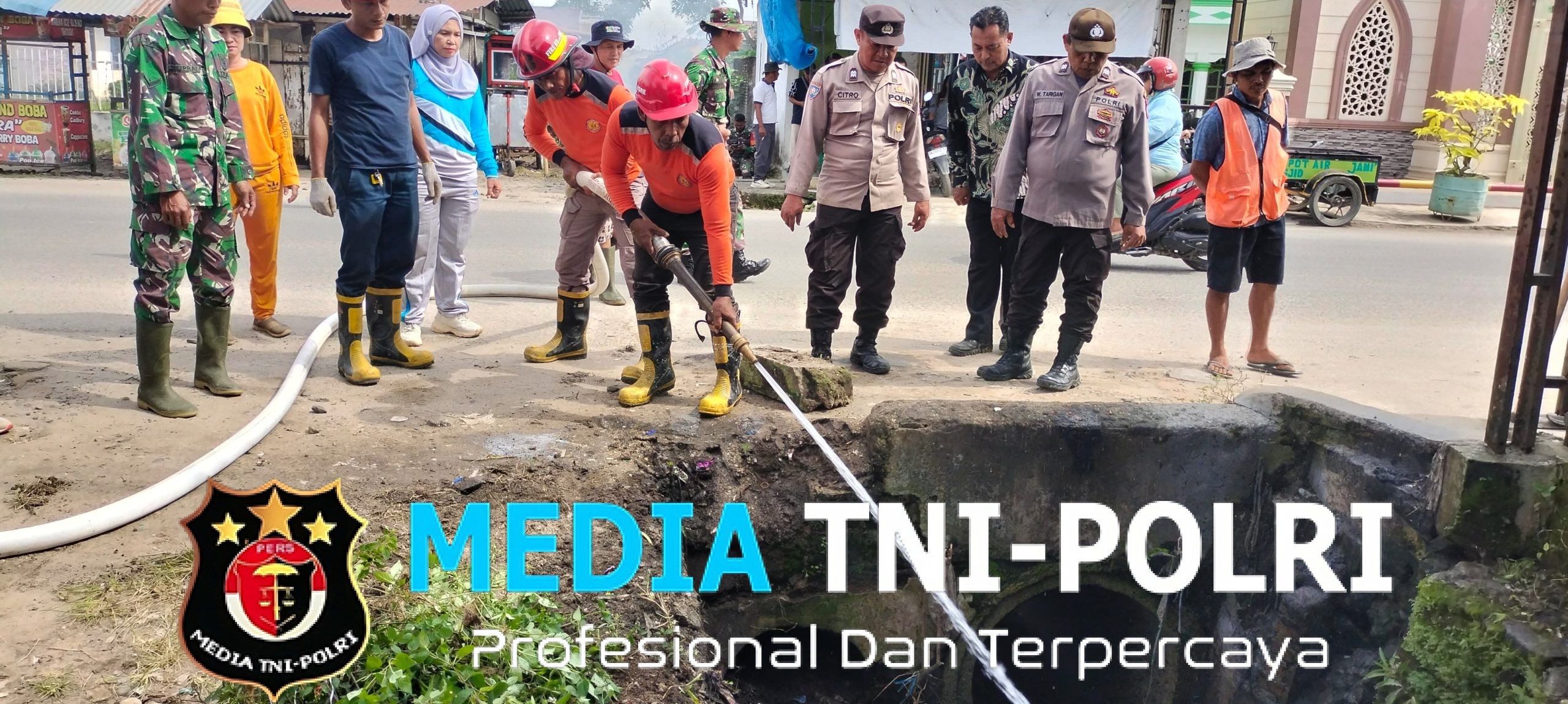 “Kami menggunakan satu unit damkar milik PT. Bridgestone untuk membantu proses pembersihan dengan menyemprotkan air bertekanan tinggi. Ini sangat efektif untuk membersihkan lumpur dan kotoran yang menempel di dinding parit,” ungkap Iptu Gunawan Sembiring menjelaskan strategi pembersihan.