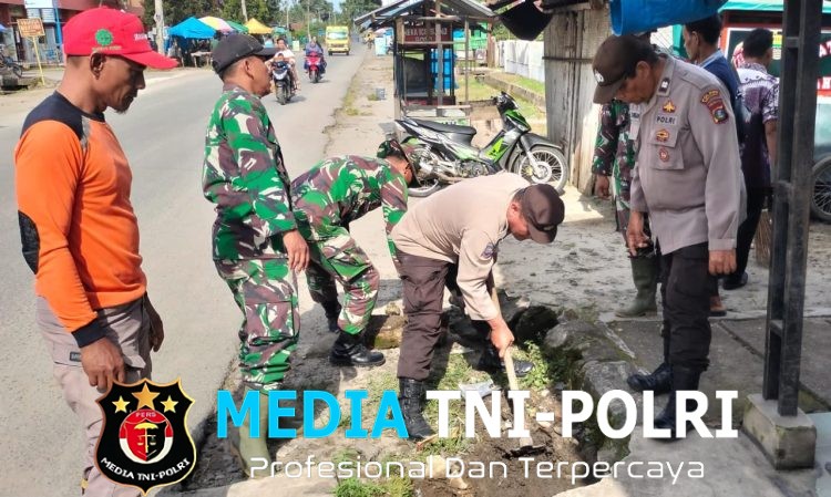 SIMALUNGUN // MEDIATNI-POLRI.COM / Solidaritas Tanpa Batas Kapolsek Serbalawan bersama Forkopimca Dolok Batu Nanggar dan masyarakat melaksanakan kegiatan kerja bakti membersihkan parit buangan di Jalan Perintis Kemerdekaan, Kelurahan Serbalawan.