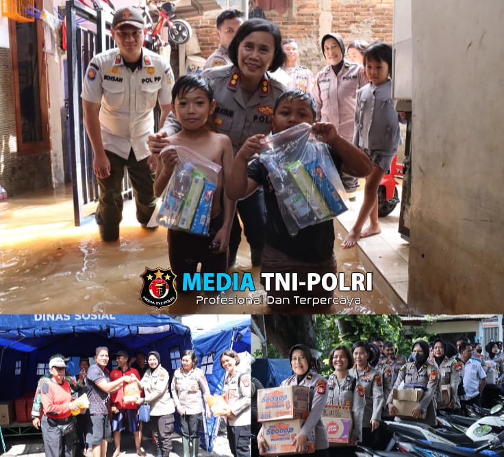 JAKARTA // MEDIATNI-POLRI.COM / Polisi Wanita (Polwan) dari Polres Metro Jakarta Barat turun langsung ke lokasi banjir di kawasan Kebon Jeruk untuk menyalurkan bantuan kepada warga terdampak.
