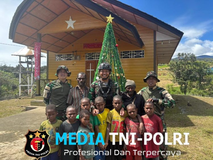 WANBAKON, PEGUNUNGAN BINTANG // MEDIATNI-POLRI.COM / Pos Serambakon Satgas Pamtas RI–PNG Yonif 751/Vira Jaya Sakti (VJS) melaksanakan kegiatan teritorial dengan mendirikan pohon Natal di Gereja Kampung Wanbakon sebagai bagian dari persiapan menyambut Hari Raya Natal.