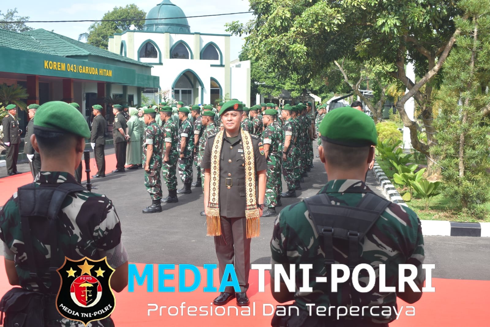 METRO // MEDIATNI-POLRI.COM / Prajurit dan PNS Korem 043/Garuda Hitam (Gatam) menyambut kedatangan Kolonel Kav Roli Dewanto, S.E., M.Tr.(Han), sebagai calon Kepala Staf Korem (Kasrem) 043/Gatam di Kota Metro, Lampung, dalam sebuah prosesi yang berlangsung khidmat.
