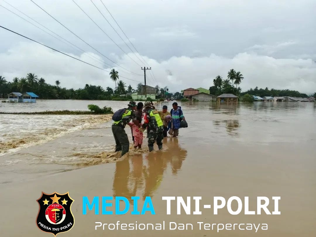 Di pos-pos pengungsian, TNI mendirikan tenda darurat, dapur umum lapangan, dan menyalurkan bantuan bagi warga yang rumahnya rusak atau terendam.
