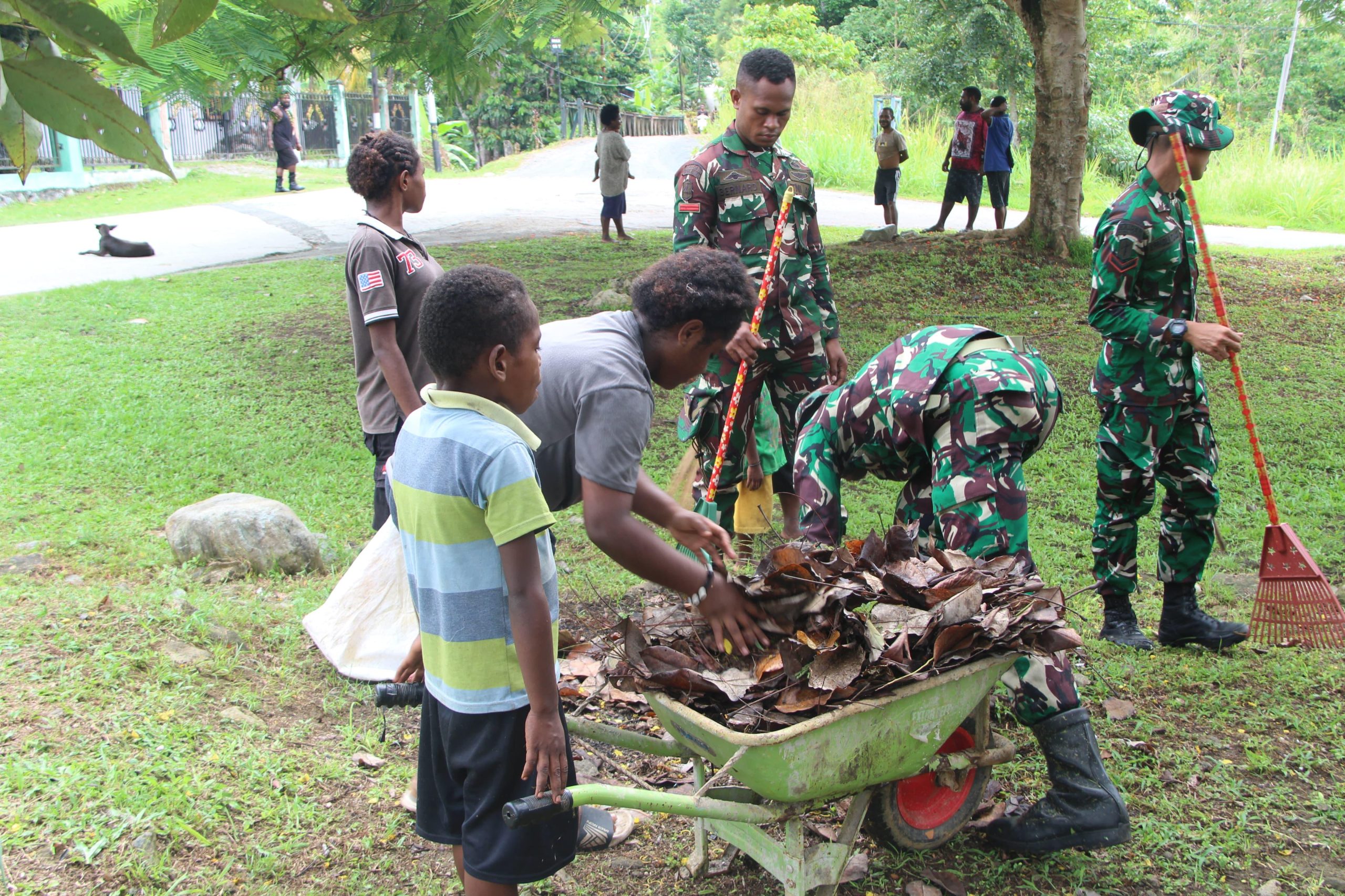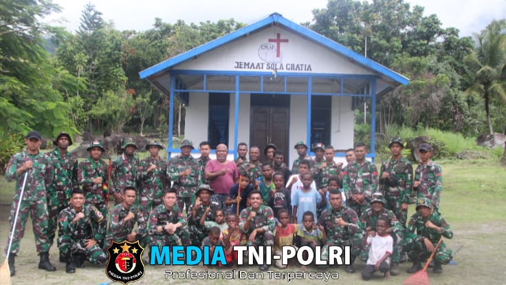 Terpusat di Gereja GPKAI Jemaat Sola Gratia, personel Yonif 751/VJS yang dalam hal ini adalah Kompi Bantuan, bersama dengan masyarakat Kampung Kemiri membersihkan lingkungan Gereja.