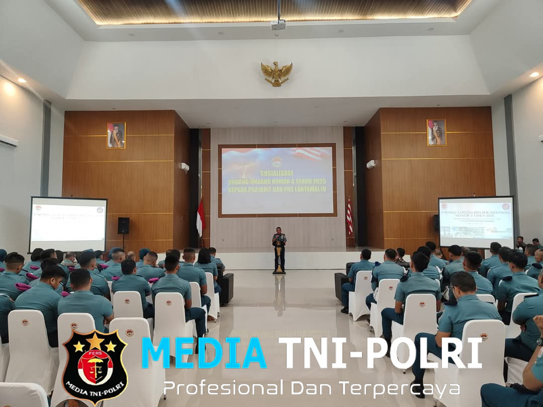 BATAM // MEDIATNI-POLRI.COM / Prajurit Yonmarhanlan IV Batam ikuti Sosialisasi Undang – Undang TNI No 3 Tahun 2025 bertempat di Gedung Serbaguna Mako Lantamal IV Batam. Selasa (22/04/2025).