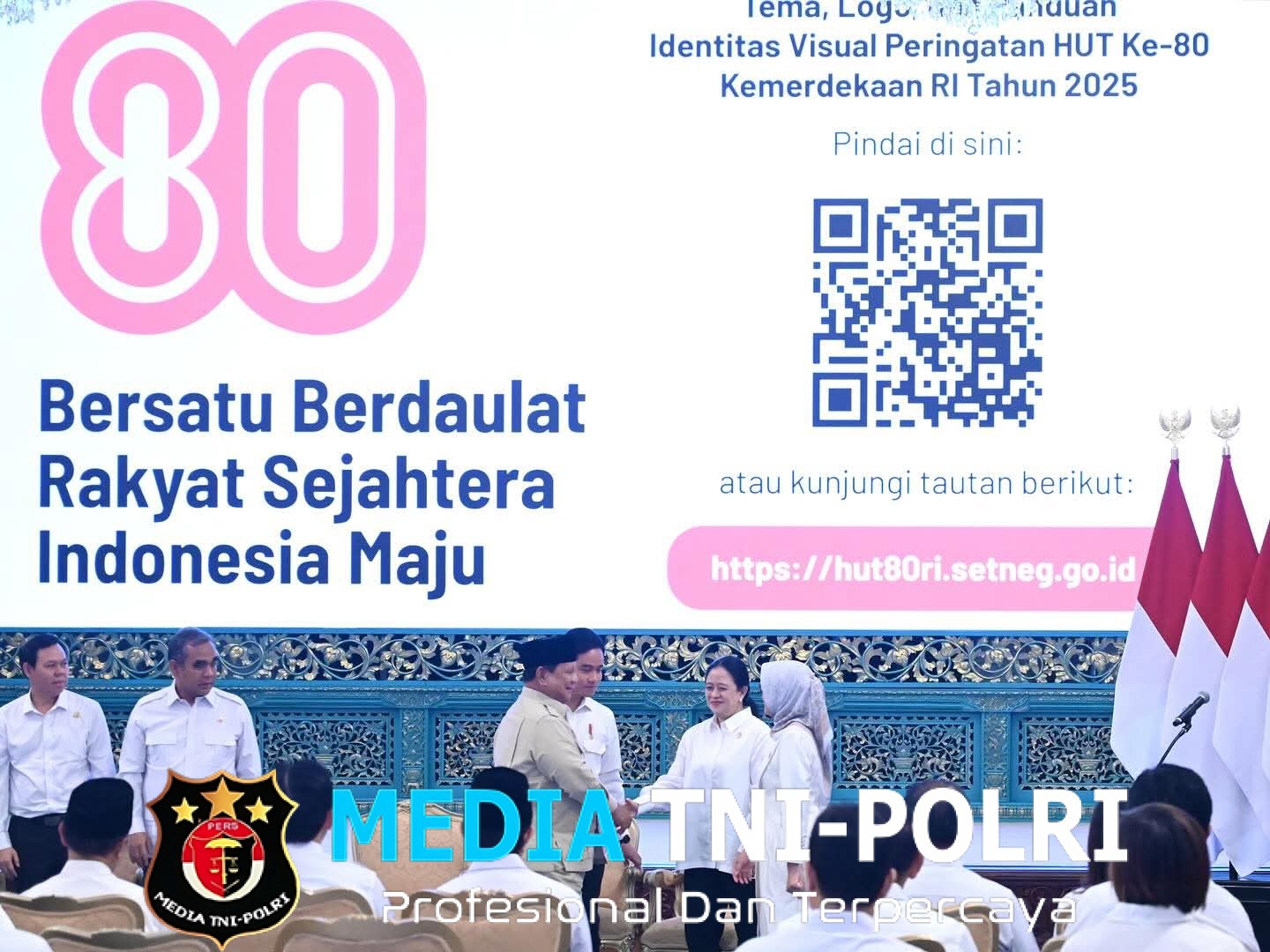 JAKARTA // MEDIATNI-POLRI.COM / Presiden RI Prabowo Subianto secara resmi meluncurkan logo dan tema Hari Ulang Tahun (HUT) ke-80 Kemerdekaan Republik Indonesia di Istana Negara, Jakarta, Rabu (23/07/2025).