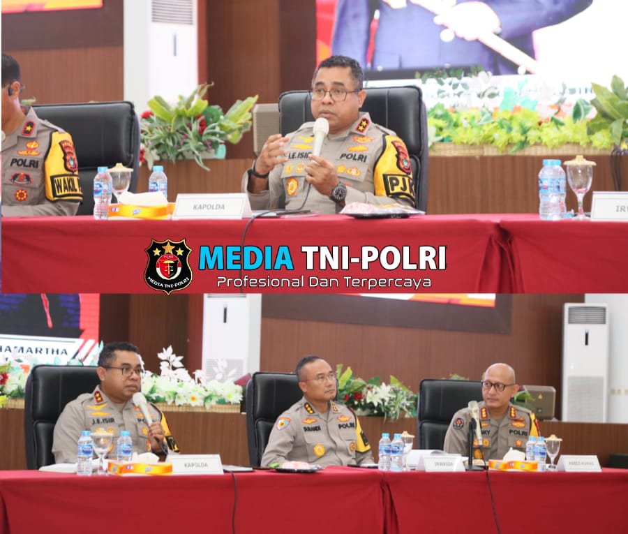 MANOKWARI PB // MEDIATNI-POLRI.COM / – Kapolda Papua Barat Irjen Pol. Johnny Eddizon Isir, S.I.K.,M.T.C.P. memimpin kegiatan Press Release Akhir Tahun 2024 bertempat di Aula Arfak Convention Hall Mapolda Papua Barat, Selasa (31/12/2024).