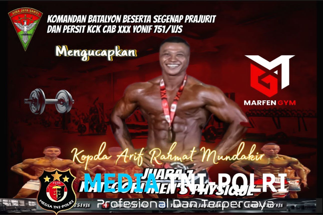 TIMIKA, PAPUA TENGAH // MEDIATNI-POLRI.COM / Batalyon Infanteri 751/Vira Jaya Sakti (Yonif 751/VJS) kembali mencetak prestasi membanggakan. Kali ini, datang dari cabang olahraga binaraga dan fitness melalui prajuritnya,