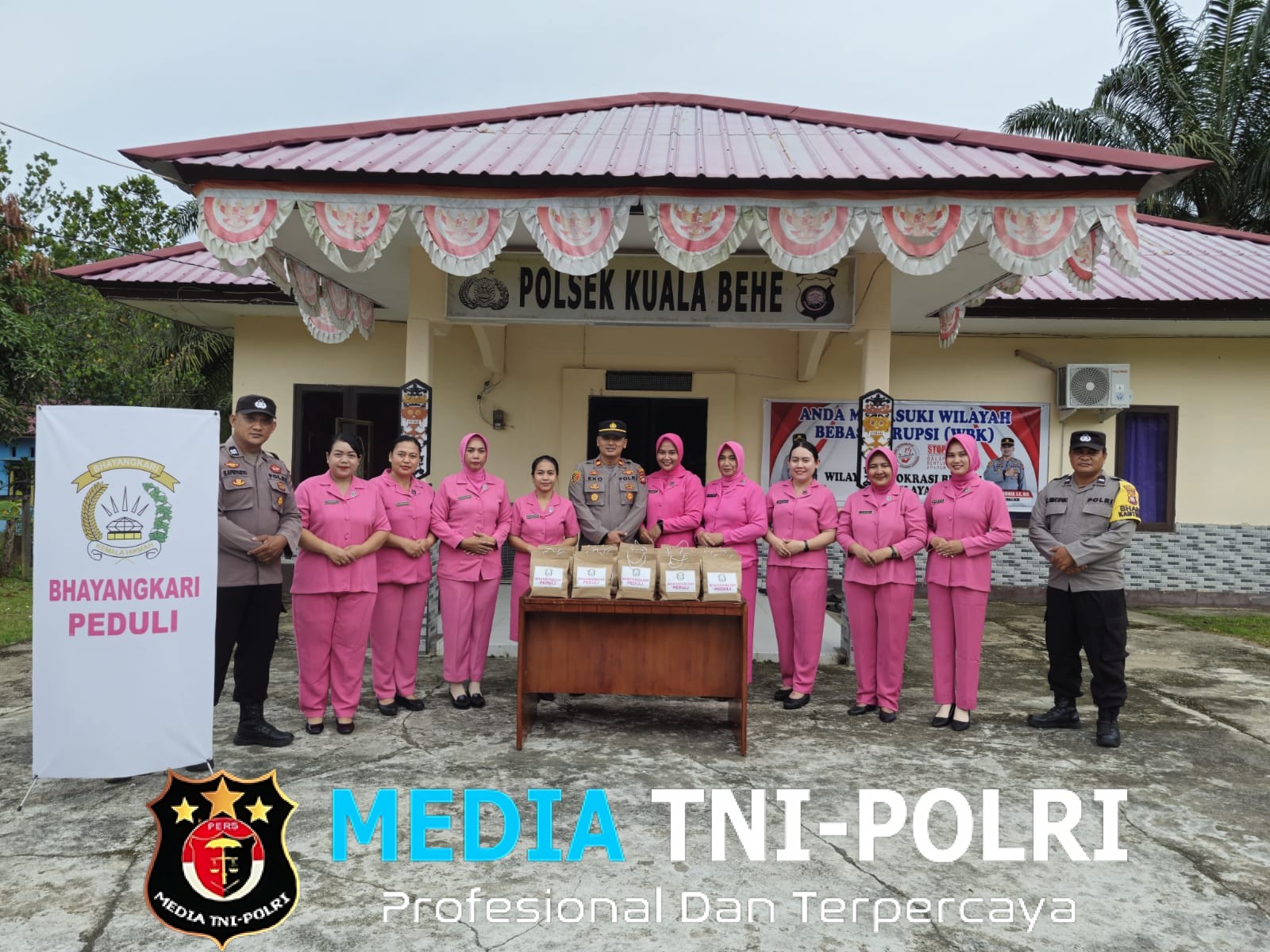 dan turut dihadiri oleh Ketua Bhayangkari Ranting Kuala Behe, Ny. Murni Eko, bersama pengurus dan anggota Bhayangkari Ranting Kuala Behe serta anggota Polsek Kuala Behe.
