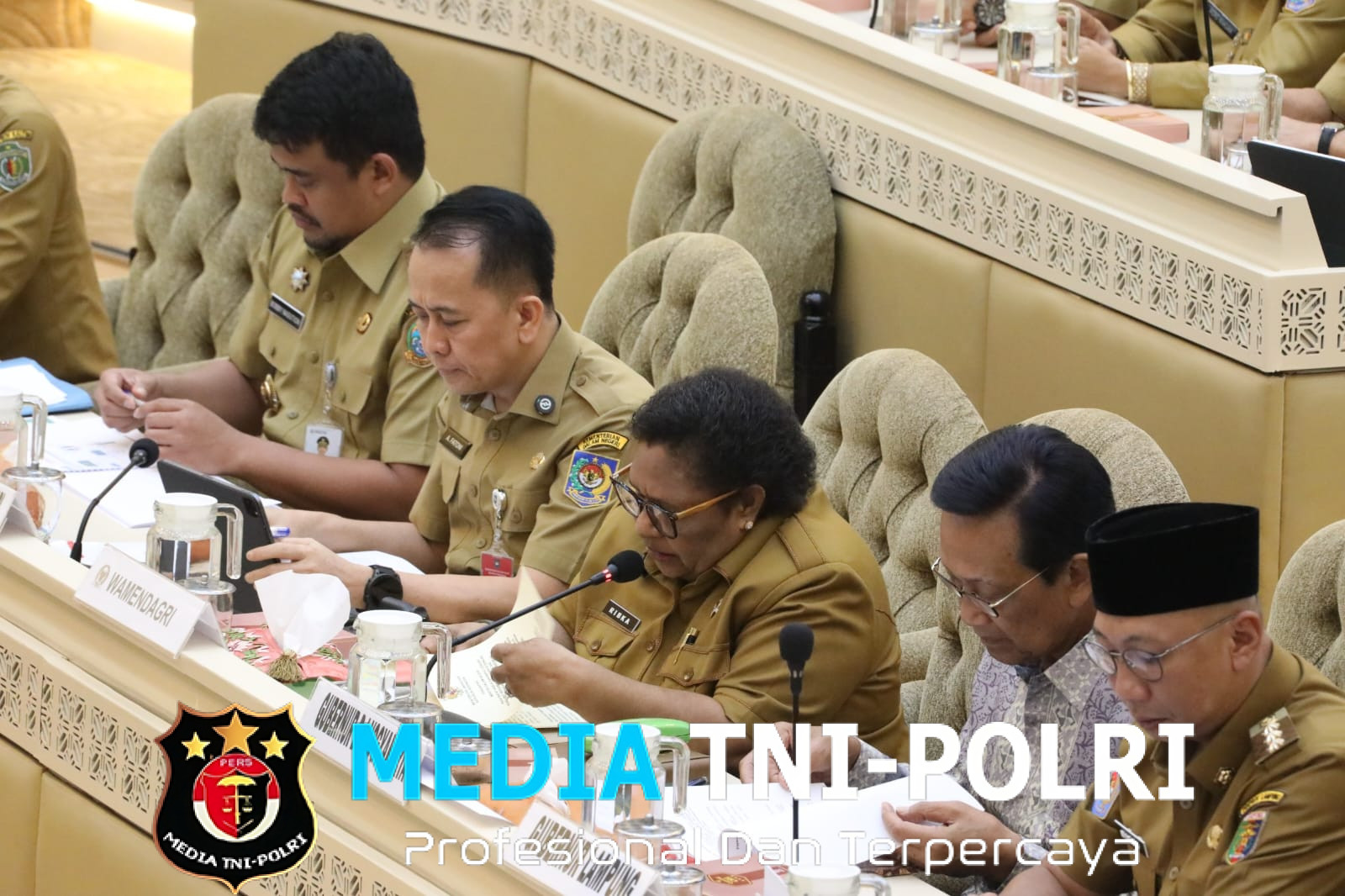 serta sejumlah pejabat terkait di lingkungan Kementerian Dalam Negeri (Kemendagri). Rapat tersebut juga dihadiri oleh sejumlah gubernur di Indonesia.