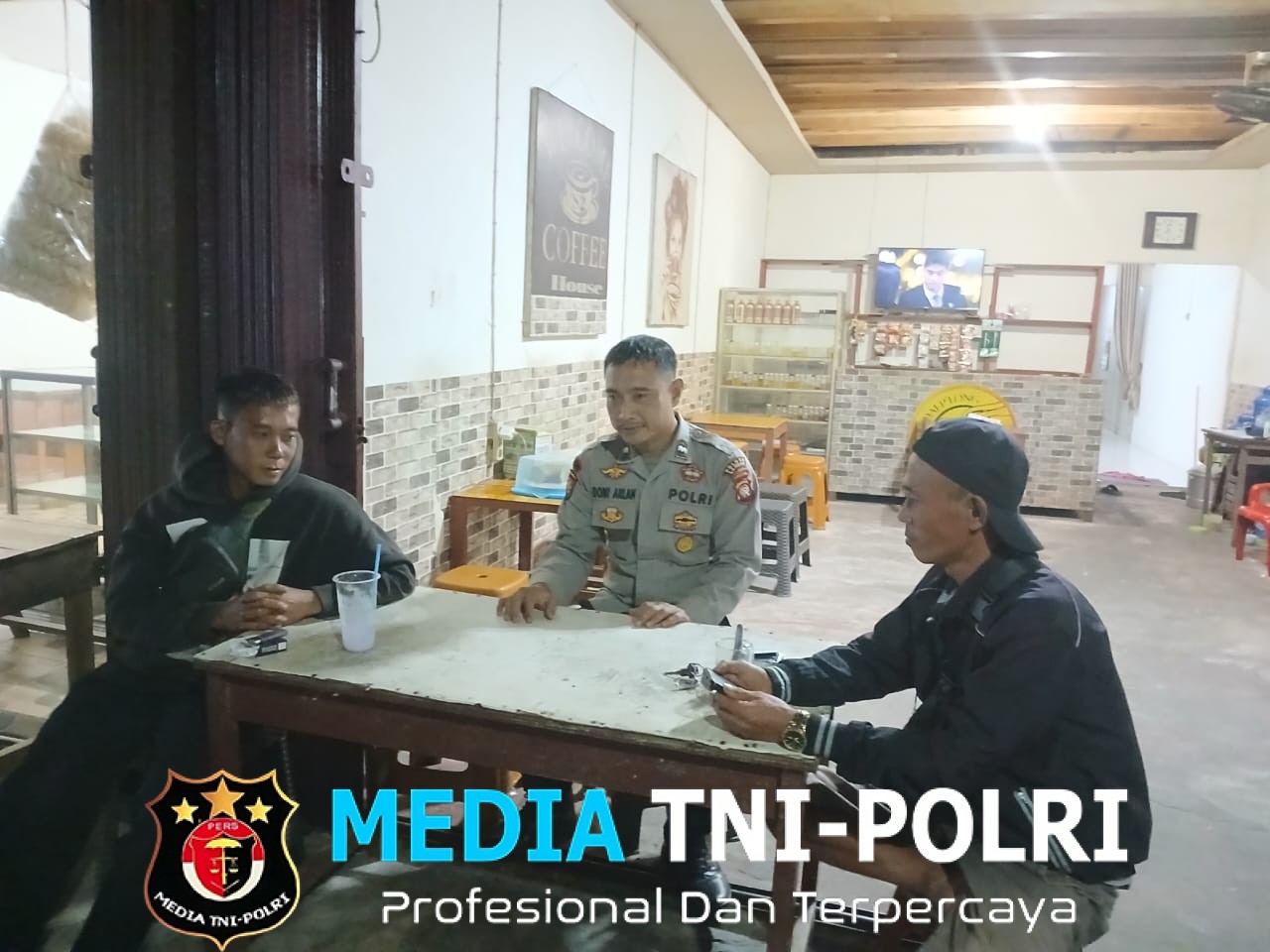 Usai melakukan pemantauan di lokasi rawan, petugas patroli tidak langsung kembali, melainkan melanjutkan kegiatan dengan menyambangi warga yang masih beraktivitas di malam hari, seperti di warung kopi dan tempat berkumpul masyarakat.