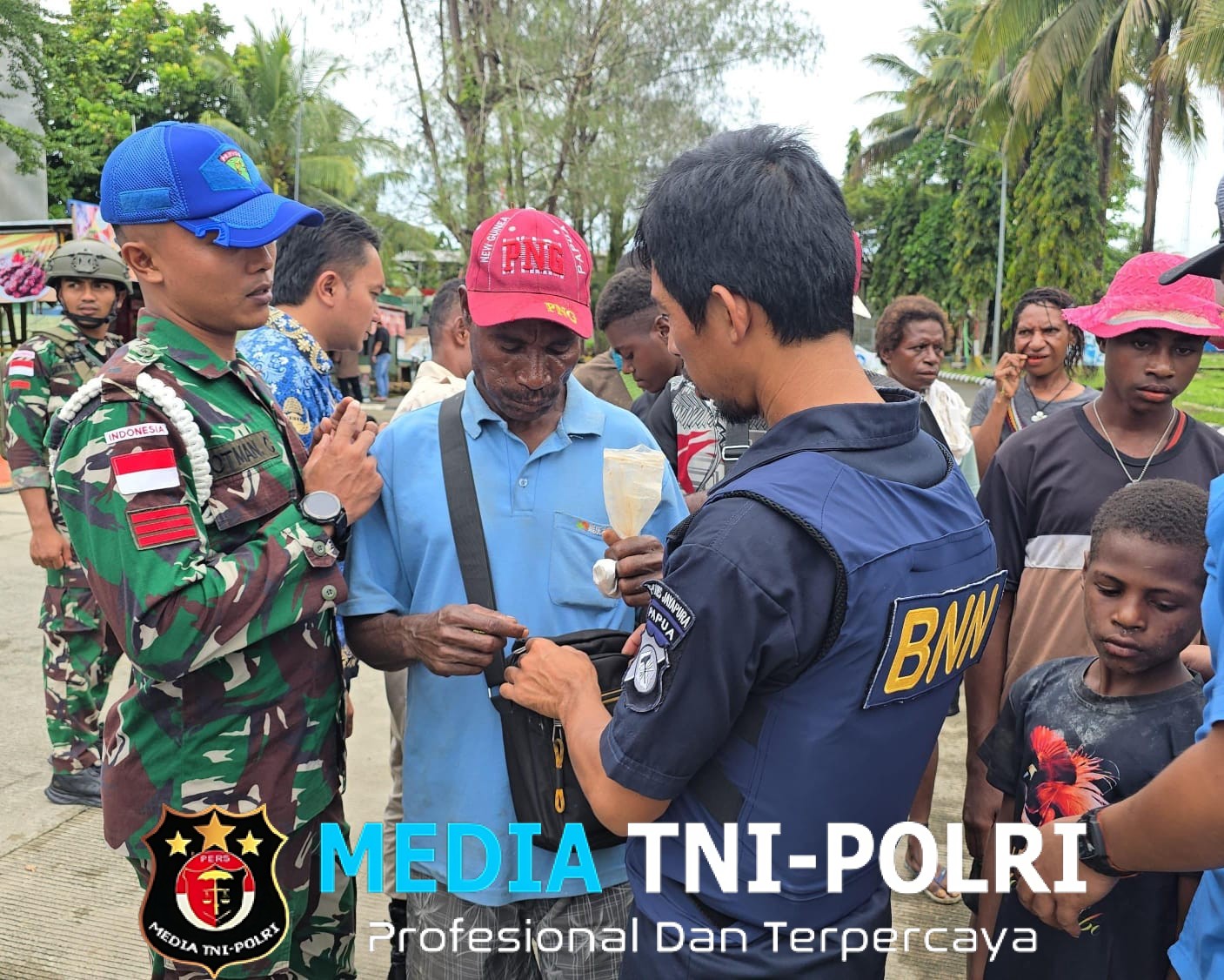 JAYAPURA // mediatni-polri.com / Rabu 18 Juni 2025 ] — Dalam rangka memperingati Hari Anti Narkotika Internasional (HANI) tahun 2025, Badan Narkotika Nasional Provinsi Papua (BNNP Papua) bersama unsur TNI-Polri, Satgas Prayuda Mamta, Bais, dan pihak PLBN Skow, melaksanakan razia gabungan yang berlokasi di samping Pos Kout Satgas Pamtas Yonif 131/Brajasakti, Kampung Mosso, Distrik Muara Tami, Kota Jayapura.