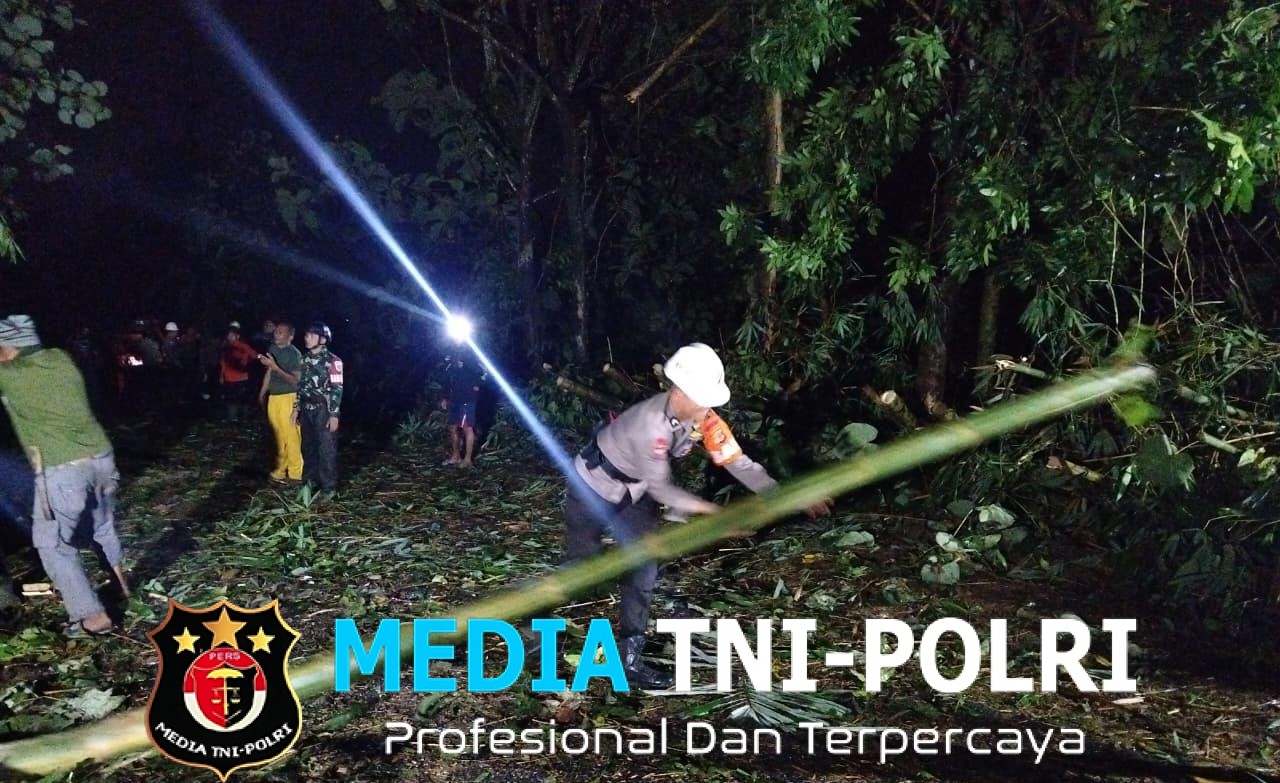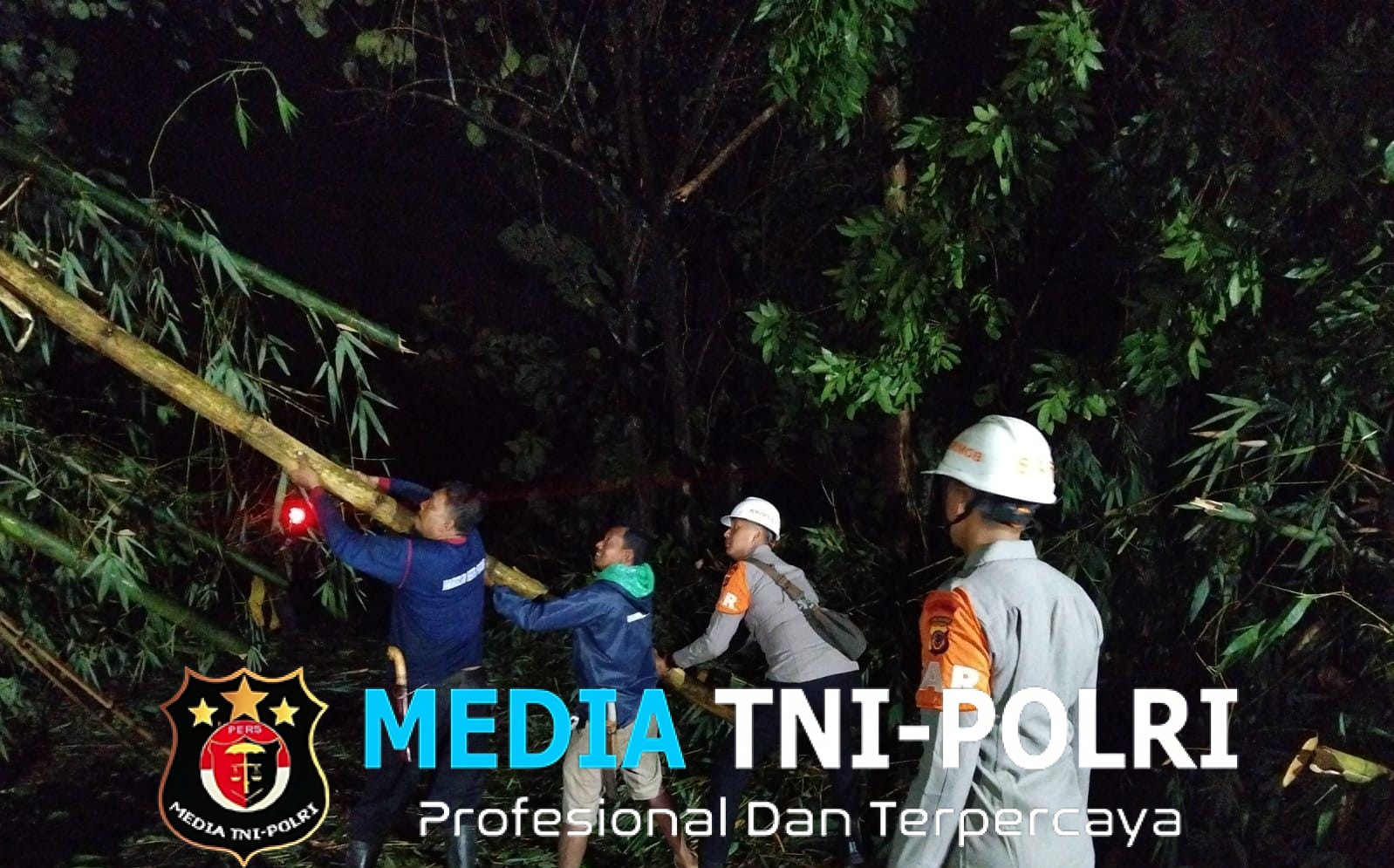 SUMEDANG // MEDIATNI-POLRI.COM / Hujan deras dari sore yang melanda wilayah Kecamatan Tanjungkerta, Kabupaten Sumedang, mengakibatkan banyak pohon bambu tumbang dan menutupi badan jalan di Desa Cipanas.