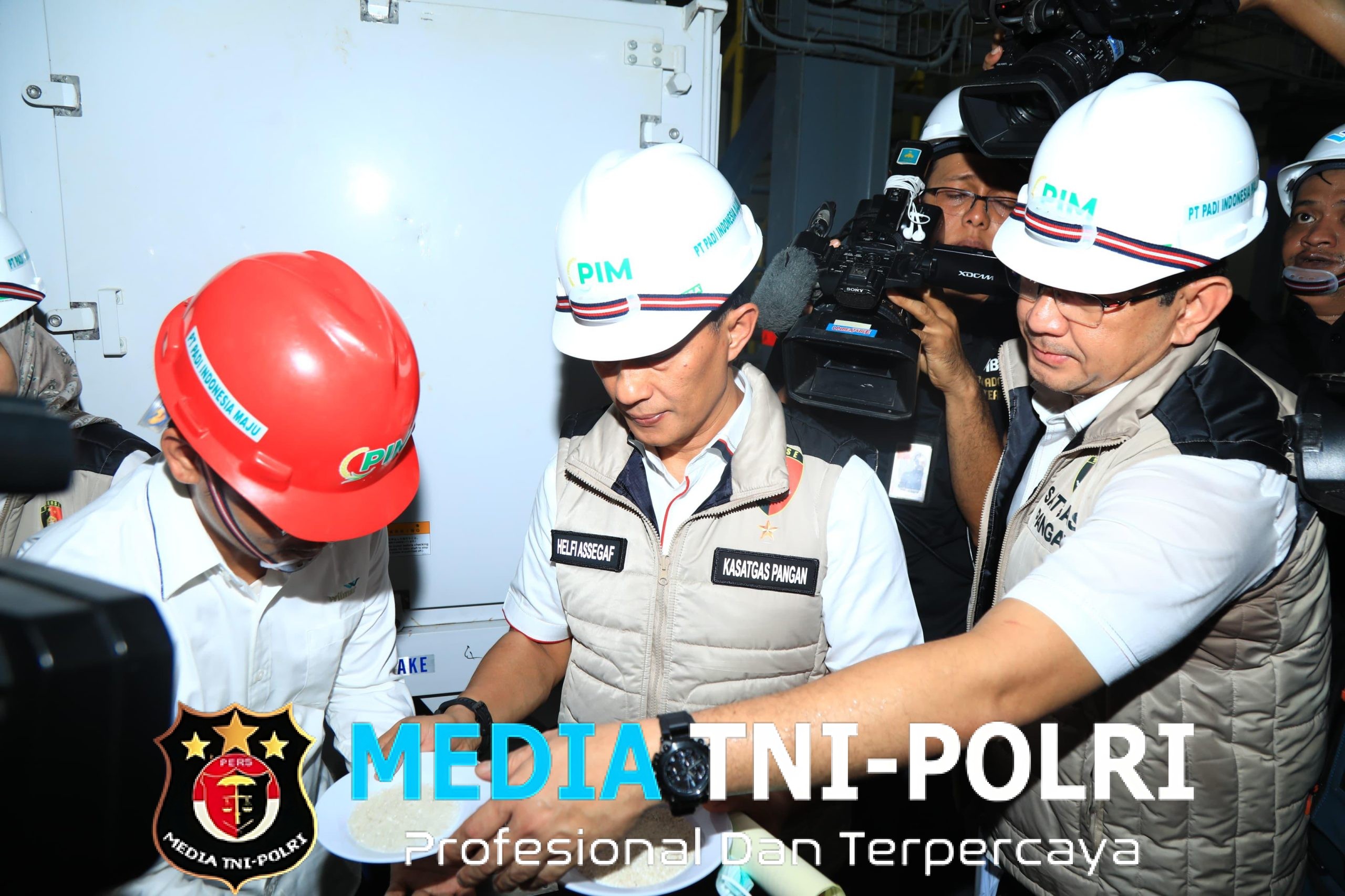 SERANG // MEDIATNI-POLRI.COM / Satgas Pangan Polri menggelar rekonstruksi lapangan terkait produksi beras yang diduga tidak sesuai standar mutu di PT Padi Indonesia Maju, Kawasan Industri Terpadu Wilmar, Serang, Banten.