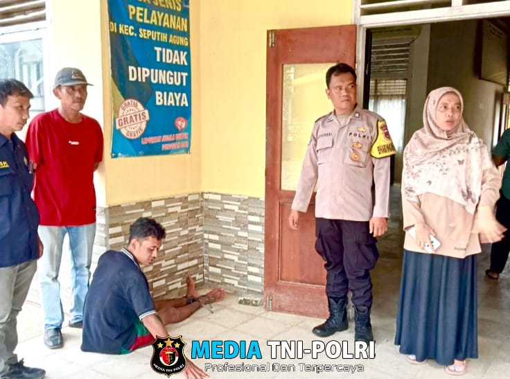 LAMPUNG TENGAH // MEDIATNI-POLRI.COM / Aksi cepat tanggap ditunjukkan oleh Bhabinkamtibmas Kampung Slusuban, Bripka Alfa Robi yang berhasil mengamankan seorang warga yang diduga mengalami gangguan jiwa (ODGJ), Jumat (11/4/2025).