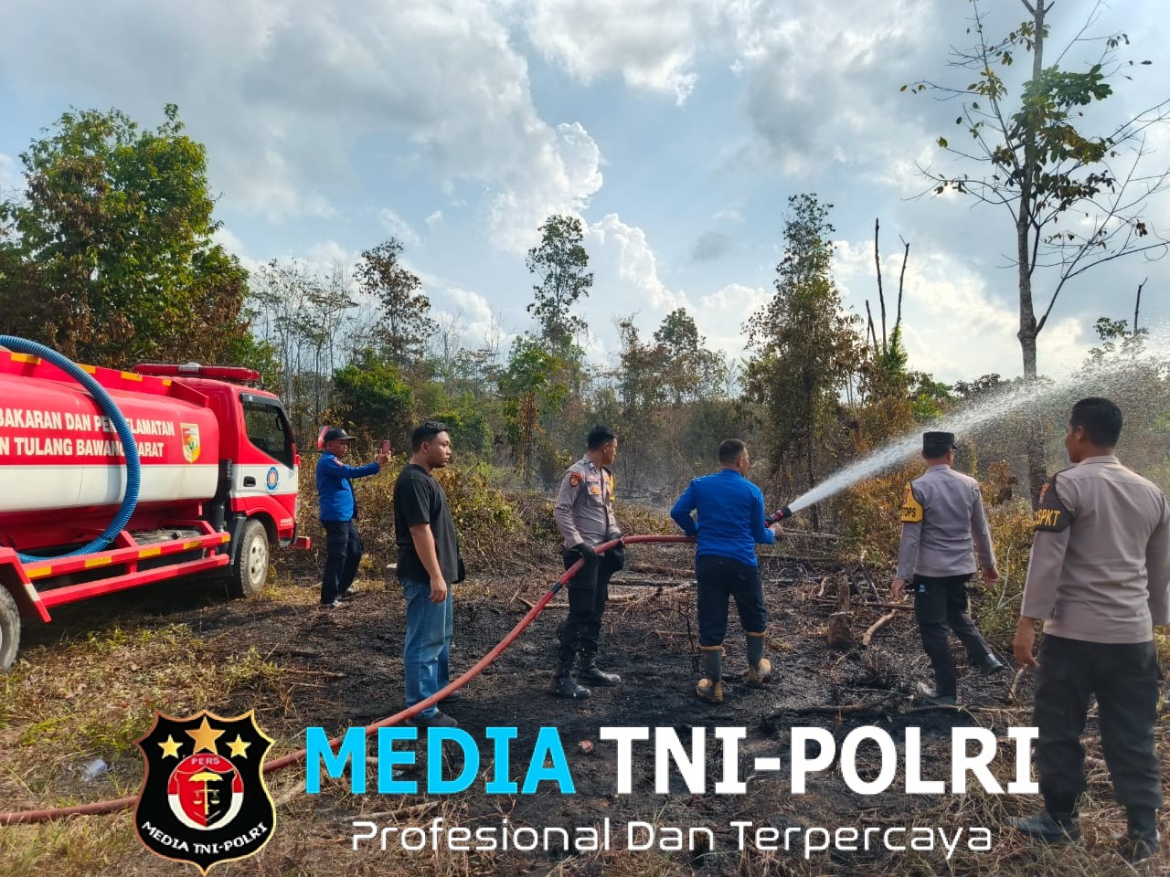 TULANG BAWANG BARAT // MEDIATNI-POLRI.COM / Respon Cepat terjadinya Kebakaran hutan dan lahan yang terjadi di Dusun 03 RT 03 Tiyuh Panaragan Kec. Tulang Bawang Tengah Kab. Tulang Bawang Barat berhasil dipadamkan oleh personil Polres Tubaba dan Polsek Tuba Tengah serta Tim BPBD Kab. Tubaba, Sabtu (27/07/2025)
