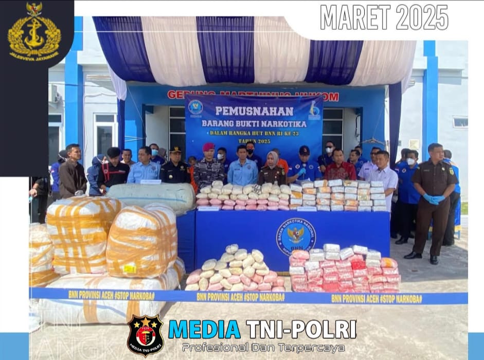 JAKARTA // MEDIATNI-POLRI.COM / “Narkoba yang dimusnahkan tersebut merupakan barang bukti penindakan BNN Provinsi Aceh dan TNI AL dalam rentang waktu tiga bulan terakhir”. Hal tersebut diungkapkan oleh Kepala BNN Provinsi Aceh Marzuki Ali Basyah saat pemusnahan barang bukti narkoba, di halaman Kantor BNN Provinsi Aceh di Banda Aceh, Kamis (20/03).