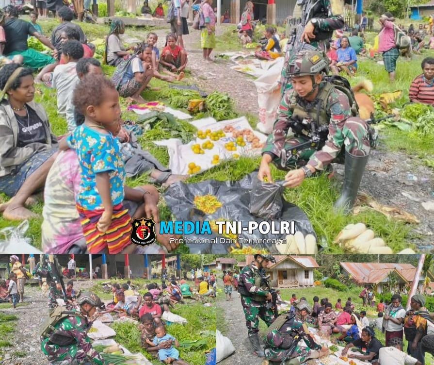 Oleh karenanya, hari Senin tersebut, para Prajurit TNI memanfaatkan patroli pengamanan wilayah dengan membantu perekonomian warga yang berjualan hasil tani.