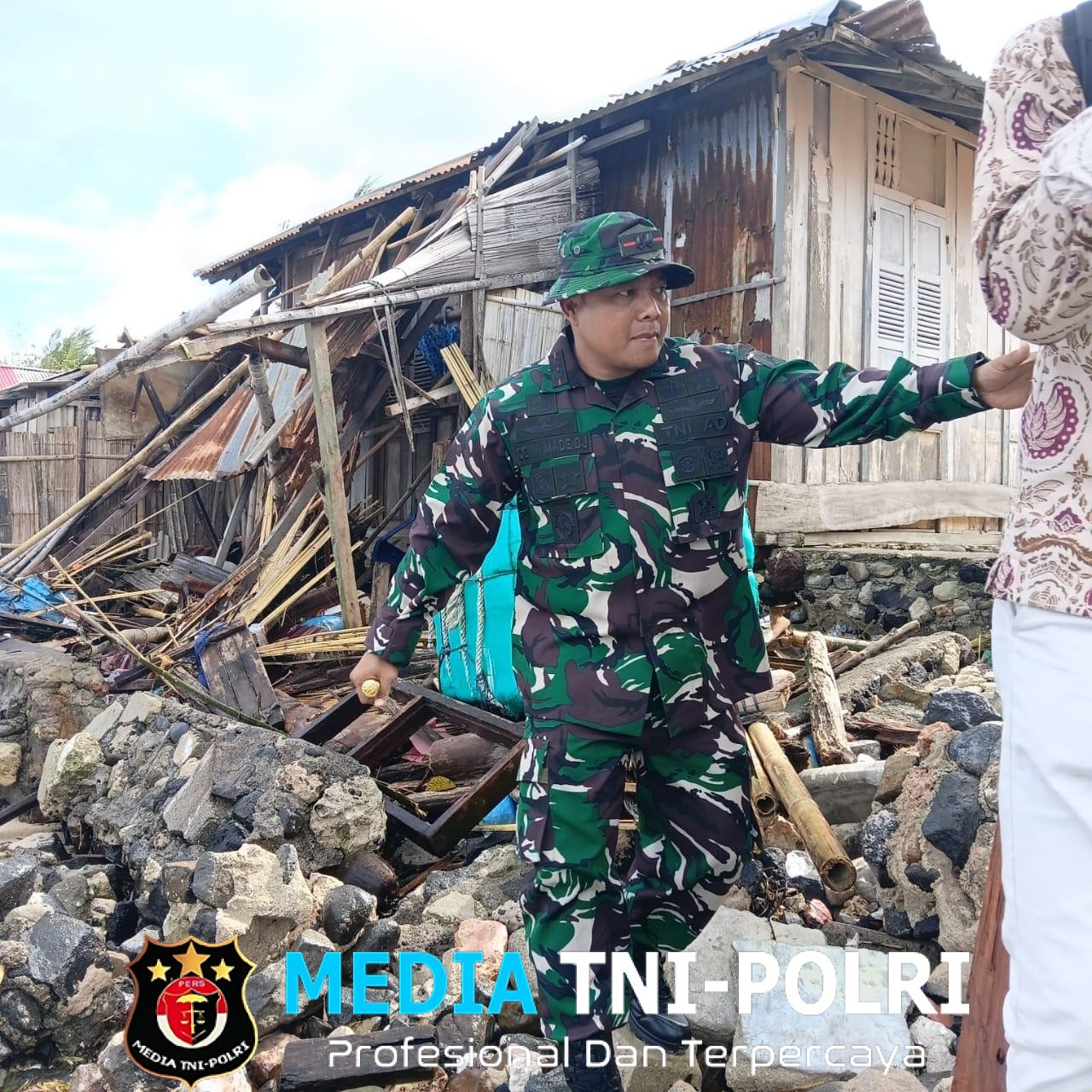 MINAHASA UTARA // MEDIATNI-POLRI.COM / Komandan Kodim 1310/Bitung Letkol Inf Dewa Made DJ, turun langsung meninjau rumah warga yang ambruk akibat angin kencang dan ombak pasang di Pesisir Pantai Pulau Gangga Kec. Likupang Barat Kab. Minahasa Utara, Kamis (08/01/2026).