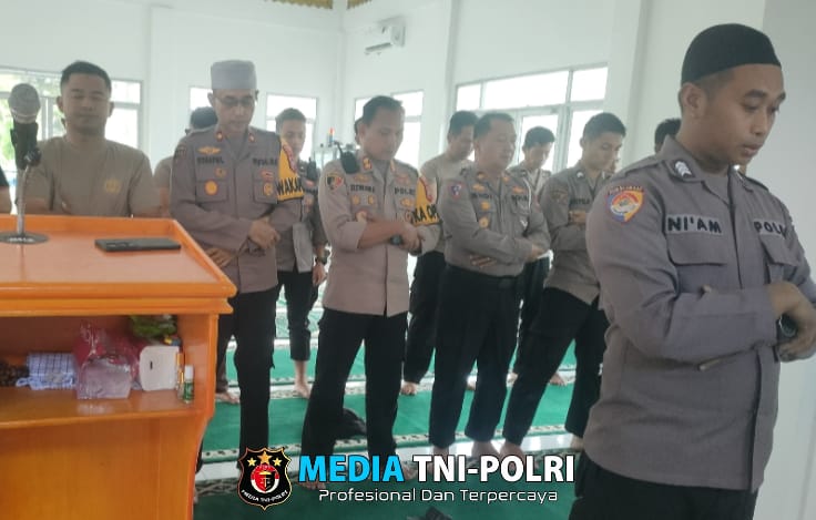 LANDAK // MEDIATNI-POLRI.COM / Polres Landak ~ Polda Kalbar ~ Sie Humas ~ Personel Kepolisian Resor (Polres) Landak menggelar salat gaib di Masjid Nurul Aman Polres Landak sebagai bentuk penghormatan dan doa bagi tiga personel Polri yang gugur dalam tugas di Kampung Karang Manik, Kecamatan Negara Batin, Way Kanan, Lampung, pada Selasa (18/3/2025).