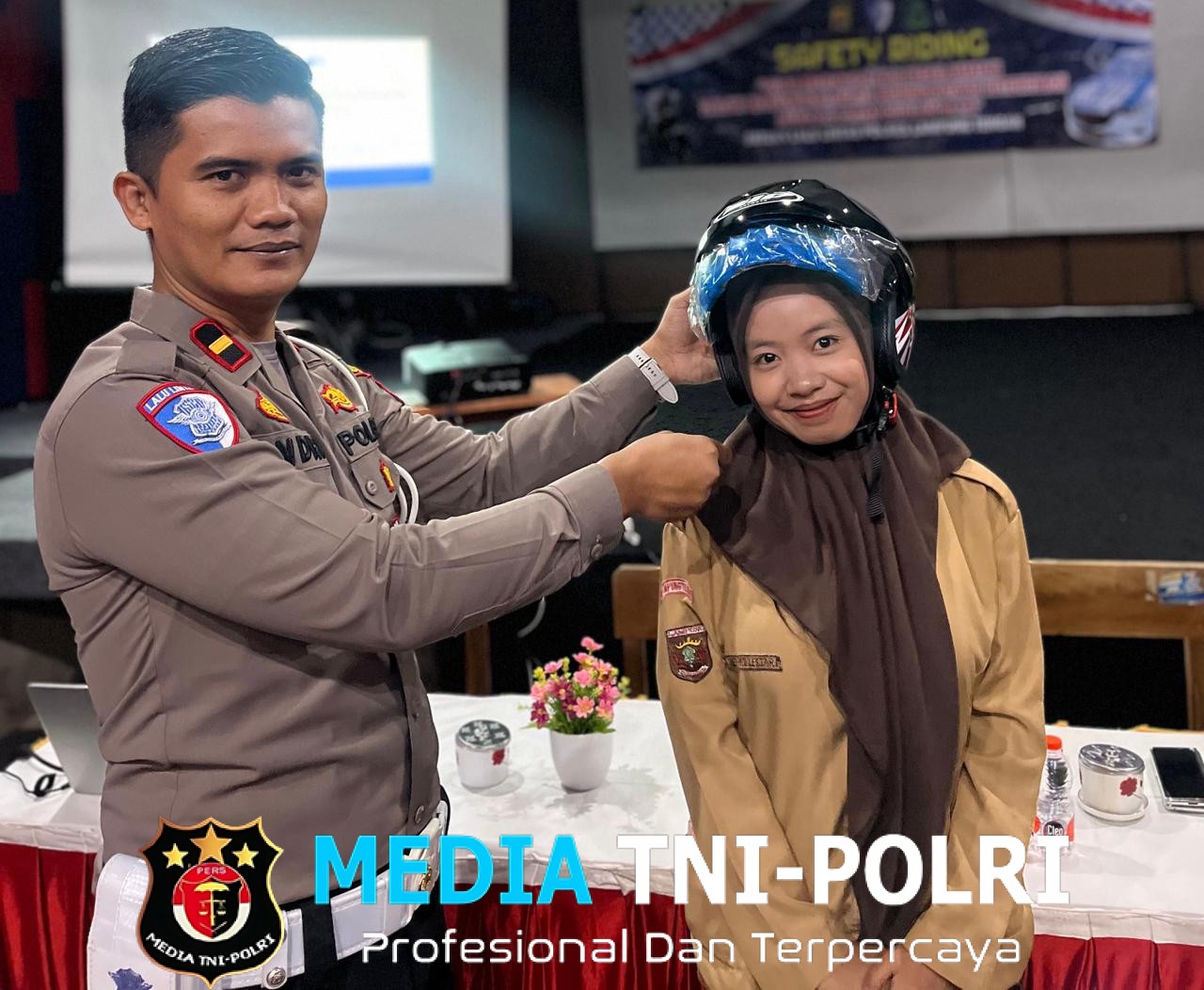 Sebagai bentuk kepedulian terhadap keselamatan dan dunia pendidikan, Satlantas Polres Lampung Tengah turut membagikan helm keselamatan serta alat tulis kepada para pelajar,