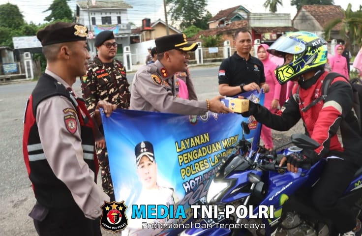 Kegiatan yang berlangsung di simpang Tugu Pepadun, Gunung Sugih menjelang waktu berbuka ini juga dimanfaatkan untuk mensosialisasikan tagline “Mudik Aman, Keluarga Nyaman” serta layanan Kepolisian melalui hotline 110.