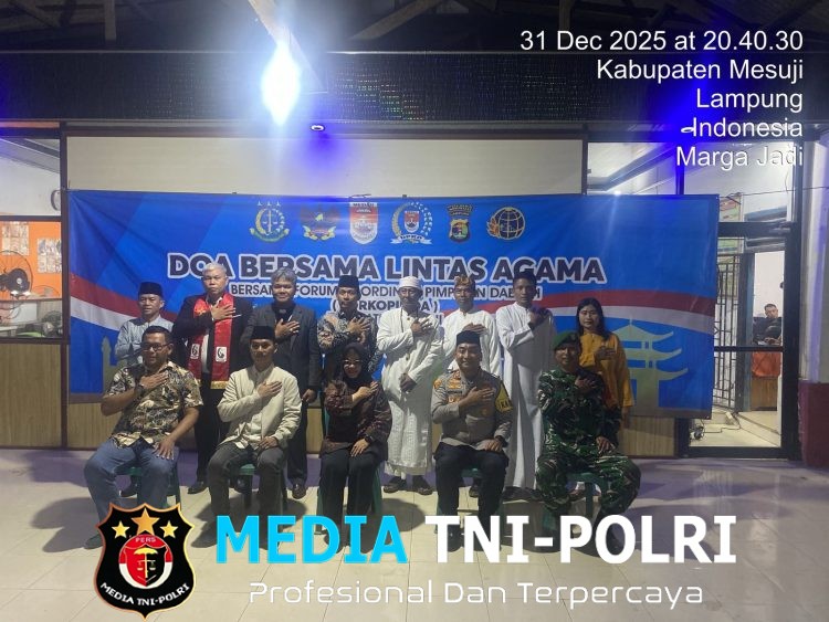 Kepolisian Resor (Polres) Mesuji bersama Pemerintah Daerah (Pemkab) Mesuji menggelar doa bersama lintas agama di Desa Marga Jadi Kecamatan Mesuji Timur Kabupaten Mesuji, Rabu (31/12/2025)