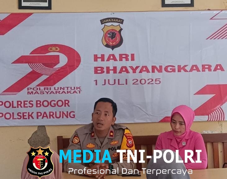 Kapolsek Parung, Kompol Maman Firmansyah, menyampaikan bahwa kegiatan ini merupakan bentuk nyata semangat Polri untuk hadir dan berbagi bersama masyarakat, selaras dengan tema peringatan Hari Bhayangkara ke-79, yaitu “Polri untuk Masyarakat.”