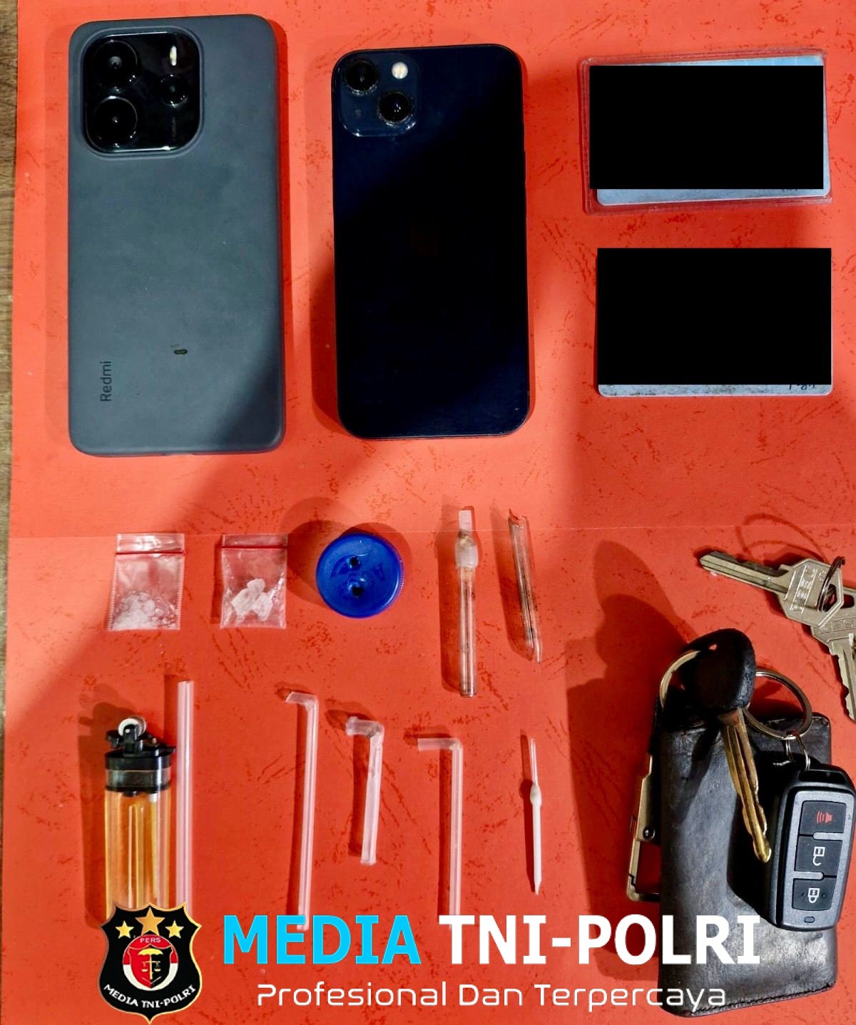 Setelah dilakukan penggeledahan, ditemukan sejumlah barang bukti, diantaranya :