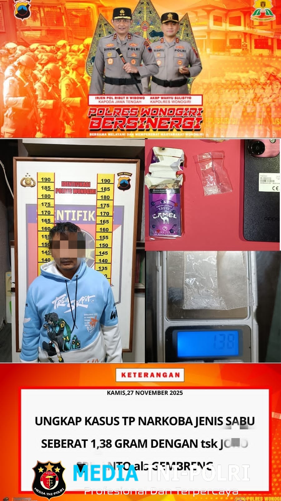 “Setiap laporan yang masuk akan langsung kami tindak lanjuti. Polres Wonogiri tidak memberikan ruang bagi pelaku penyalahgunaan ataupun peredaran narkotika di wilayah kami,” tegasnya.