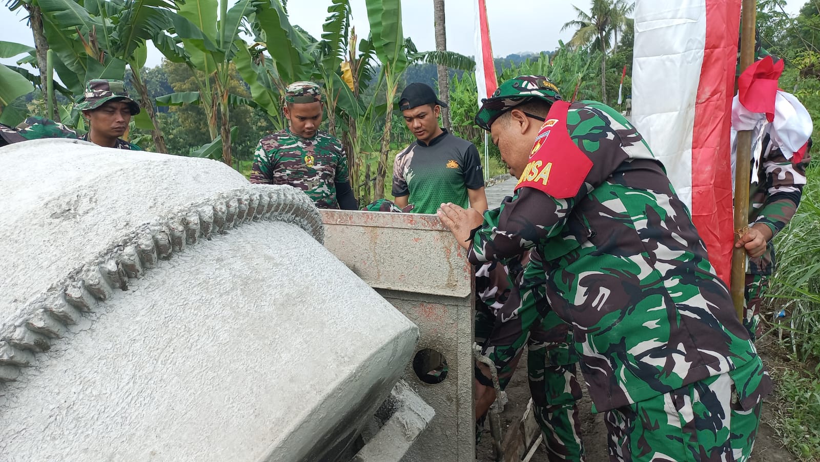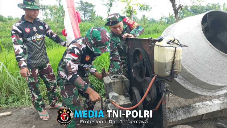 BOYOLALI // MEDIATNI-POLRI.COM / Selain cuaca yang cukup panas dan menyengat menjadi kendala, ada juga kendala lainnya yang kadang dialami oleh anggota satgas TMMD Reg ke 123 Kodim 0724/Boyolali salah satunya saat memindahkan atau menggeser mesin pengaduk material cor atau biasa disebut molen. Senin ( 24/02/2025)