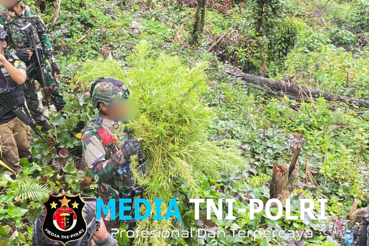 PEGUNUNGAN BINTANG // MEDIATNI-POLRI.COM / Satgas Yonif 751/Vira Jaya Sakti (VJS) bersama Satgas gabungan TNI-Polri berhasil mengungkap keberadaan ladang ganja di wilayah pedalaman Kabupaten Pegunungan Bintang, Papua Pegunungan, Sabtu (11/4/2026).