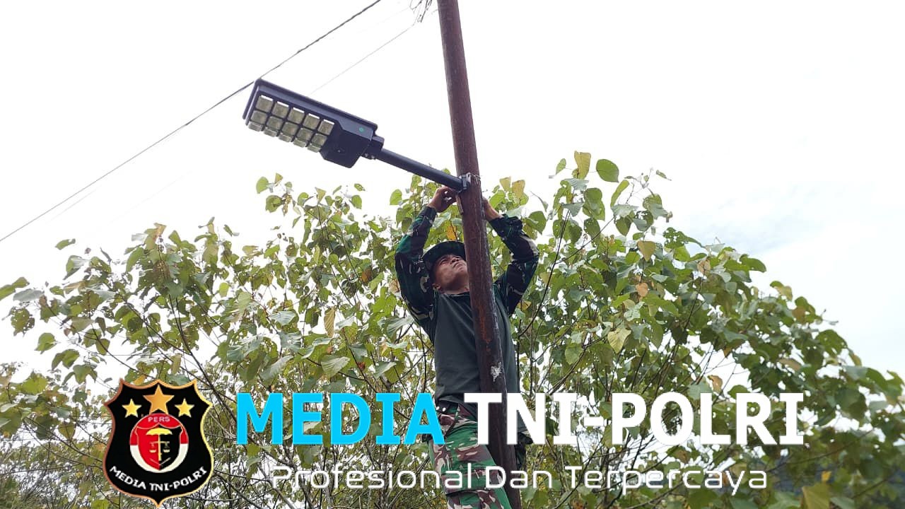 TAPANULI TENGAH // MEDIATNI-POLRI.COM / Personel Yonif 125/SMB bersama Personel Komlekdam I/BB melaksanakan pemasangan lampu solar light dan lampu solar system di sepanjang jalan serta membantu pemasangan lampu di rumah-rumah warga Desa Mardame, Kecamatan Sitahuis, Kabupaten Tapanuli Tengah, Sabtu (13/12/2025).