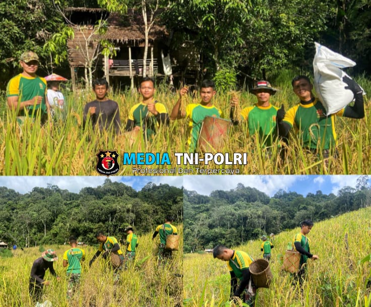 NUNUKAN // MEDIATNI-POLRI.COM / 25 Februari 2025 – Satgas Pamtas Yonarmed 11 Kostrad Pos Lumbis bersama warga Desa Duyan Kec Lumbis Hulu Kab Nunukan melaksanakan panen padi gunung secara gotong royong di Sentra Ketahanan Pangan desa binaan Pos Lumbis,