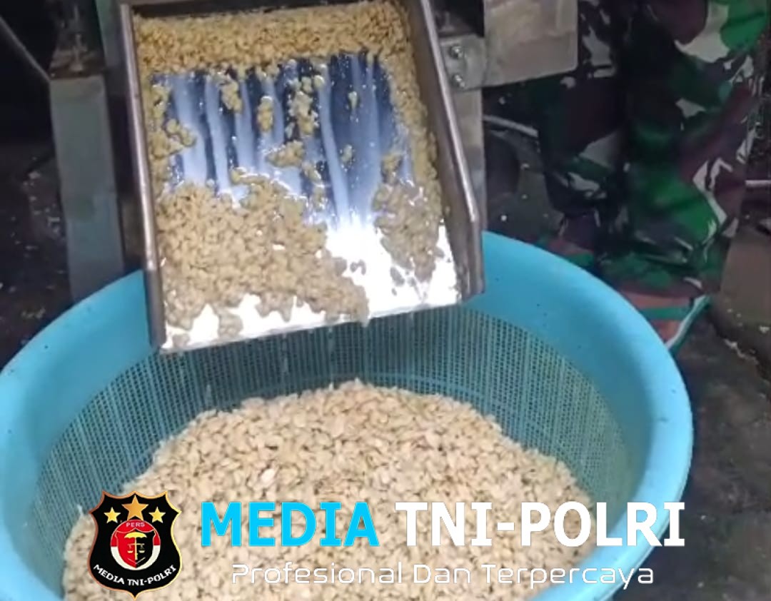 Sejak pagi hari, para prajurit TNI bahu-membahu bersama pemilik usaha menyiapkan bahan baku yang didatangkan dari luar desa, membersihkan kedelai, hingga mengoperasikan mesin pemisah kulit kedelai.