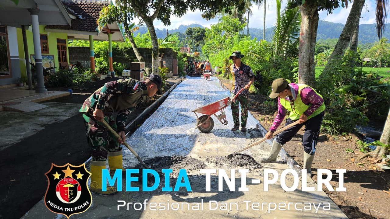 Satgas TMMD ke-126 Kodim 0818/Malang-Batu dan Warga Lebakharjo Kompak Laksanakan Pengecoran Jalan Rabat Beton Simbol Kemanunggalan TNI-Rakyat