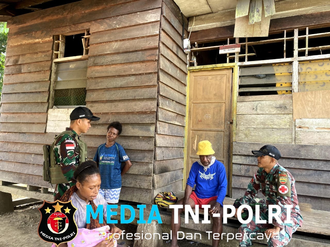 Melalui Pos Ampas, personel melaksanakan kegiatan Pembinaan Teritorial (Binter) sekaligus memberikan pelayanan kesehatan gratis bagi warga Kampung Ampas, Distrik Waris, Kabupaten Keerom.