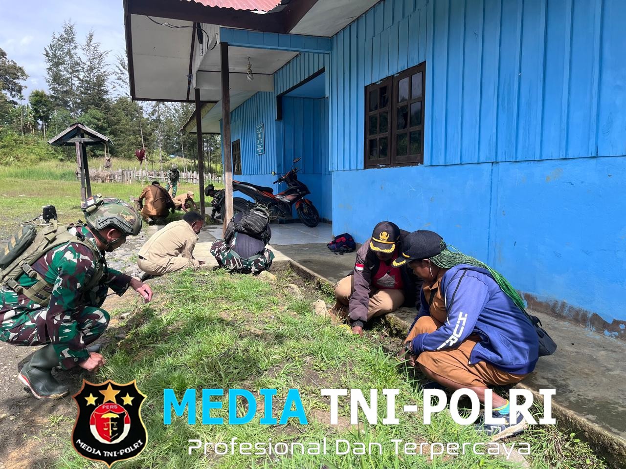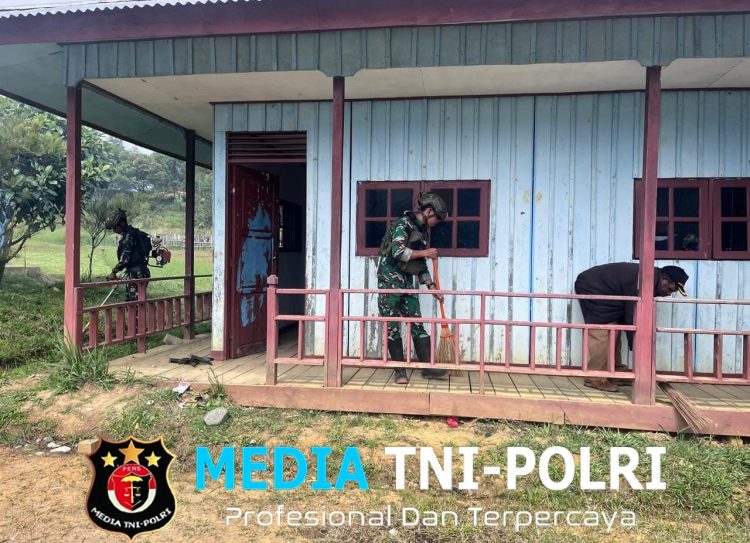 GOME, PUNCAK // MEDIATNI-POLRI.COM / Dalam semangat kebersamaan dan pengabdian, Satgas Yonif 700/Wira Yudha Cakti (WYC) melalui Pos Kout Koper melaksanakan kegiatan Karya Bhakti di halaman Kantor Distrik Gome, Kabupaten Puncak, Senin pagi. (22/9/2025).
