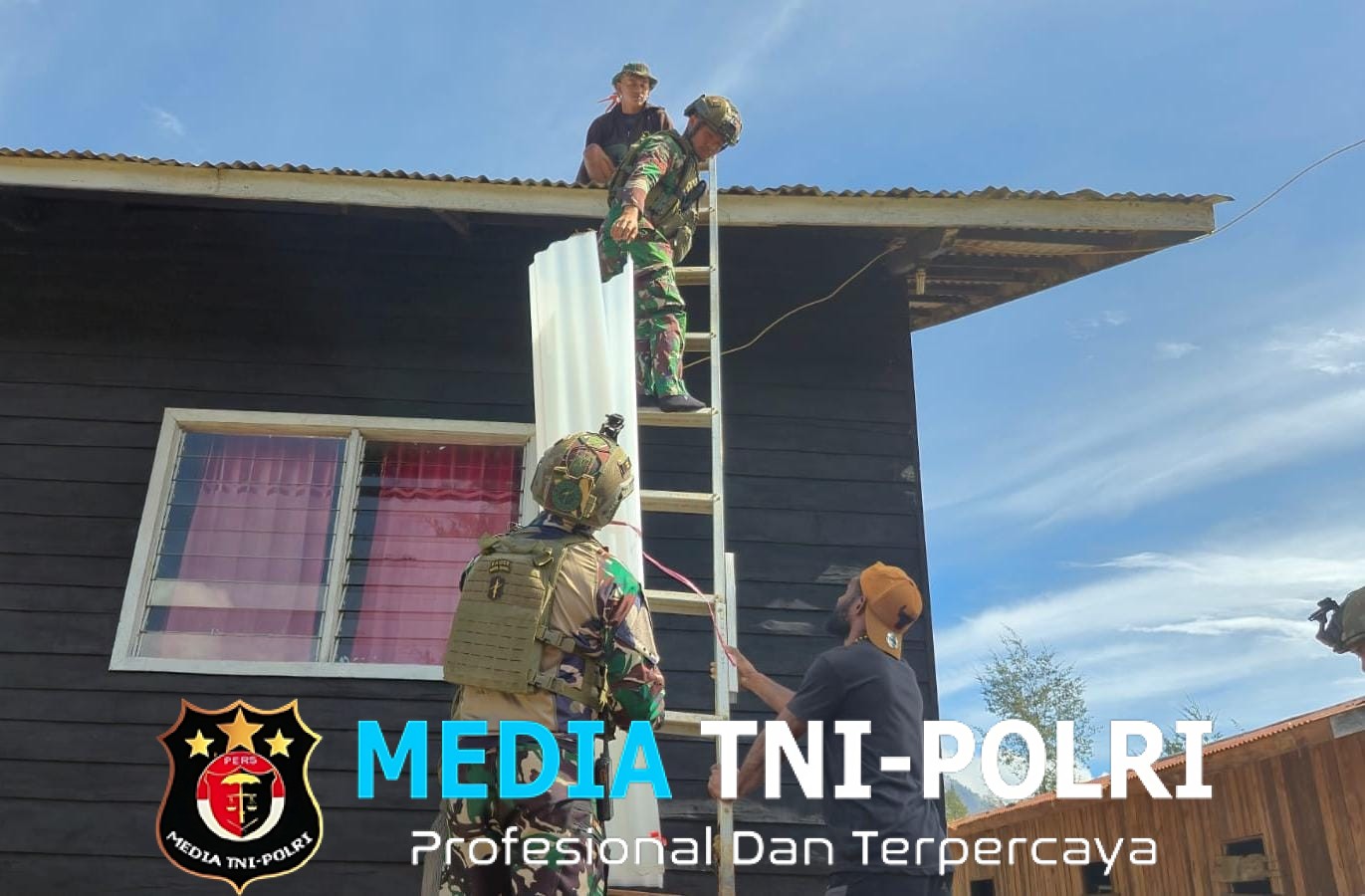 PUNCAK, PAPUA // MEDIATNI-POLRI.COM / Dalam semangat kebersamaan dan kepedulian terhadap masyarakat di wilayah penugasan, Satgas Yonif 700/Wira Yudha Cakti (WYC) melalui Pos Titik Kuat Bendungan melaksanakan kegiatan Binter terbatas dengan menggelar Karya Bhakti membantu jemaat GKII (Gereja Kemah Injil Indonesia) Jemaat Yerusalem Eromaga memperbaiki atap gereja yang rusak di Kampung Nipuralome, Distrik Omukia, Kabupaten Puncak, Papua. (20/10/2025).