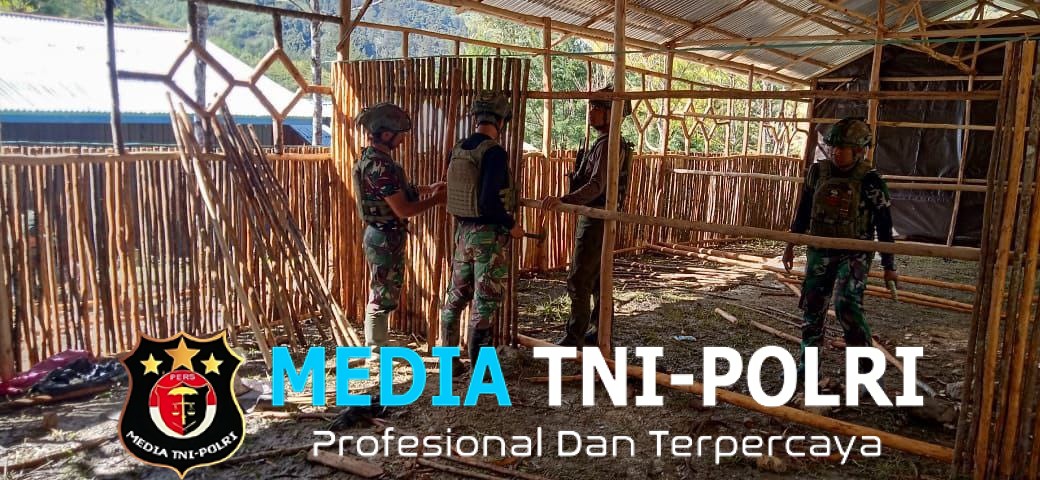 Dipimpin langsung oleh Danpos Mayuberi Letda Inf Arif Natsir, prajurit TNI melanjutkan pembangunan tiga ruang kelas SD 03 Mayuberi, Kampung Mayuberi, Distrik Ilaga Utara, Kabupaten Puncak. (14/8/2025)