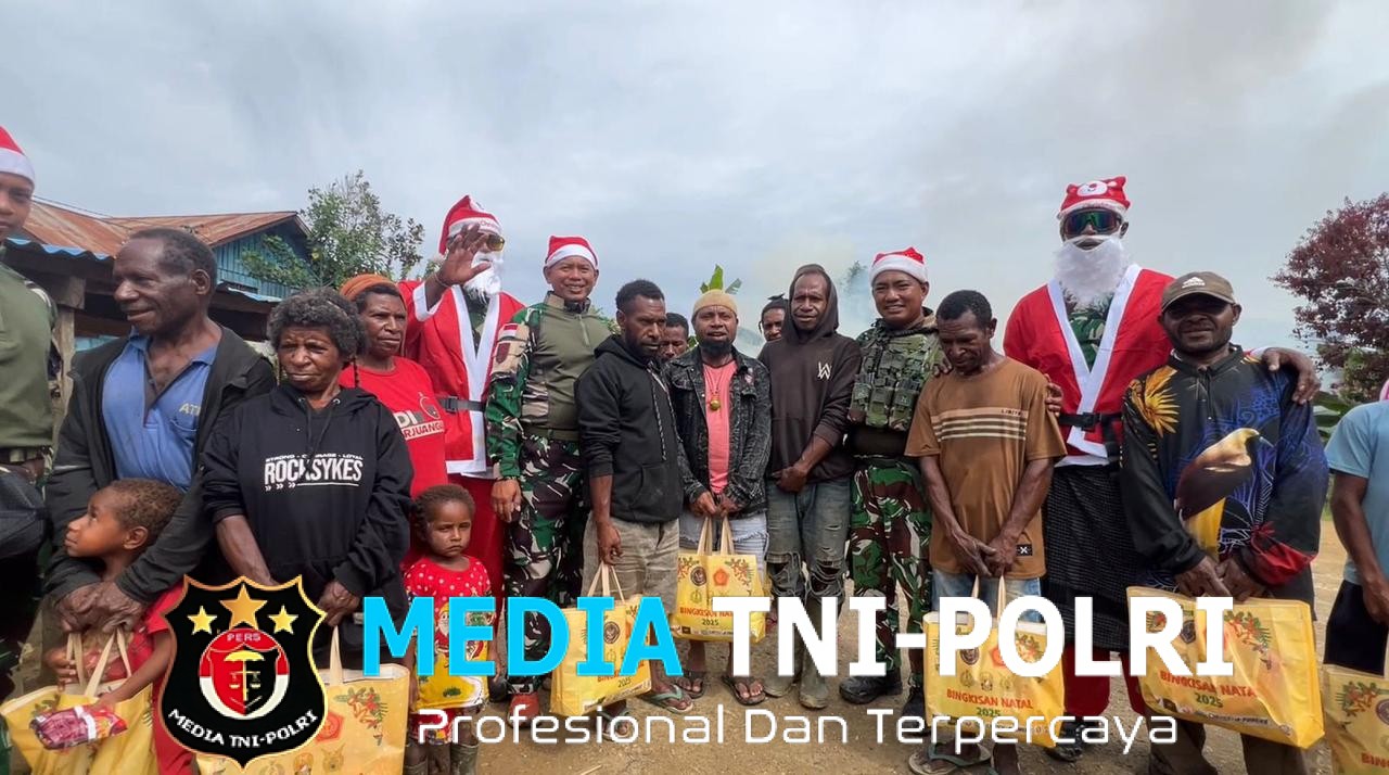 OKSIBIL, PEGUNUNGAN BINTANG // MEDIATNI-POLRI.COM / Dalam rangka memperingati Hari Raya Natal, Satgas Yonif 751/Vira Jaya Sakti (VJS) melaksanakan kegiatan sosial dengan membagikan bingkisan Natal kepada masyarakat Oksibil secara door to door.