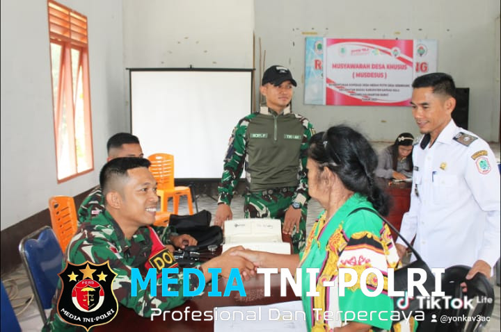 NANGA BADAU // MEDIATNI-POLRI.COM / Tim Kesehatan Kotis Nanga Badau Satgas Pamtas RI-Malaysia Yonkav 3/Andhaka Cakti, membantu Petugas Puskesmas pelayanan Posyandu Pengobatan Lansia di Ds. Sebindang Kec. Badau Kab. Kapuas Hulu. Rabu, (4/6/2025).