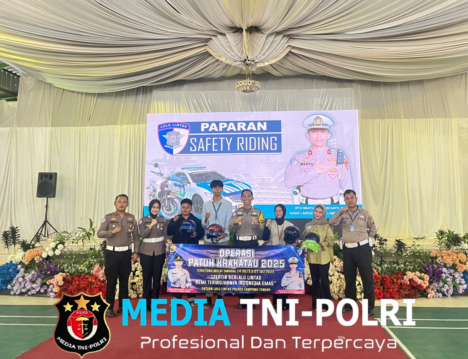 Satlantas Polres Lampung Tengah Gelar Sosialisasi Keselamatan Berkendara dan Bagikan Helm SNI Gratis Dalam Rangka Operasi Patuh Krakatau 2025