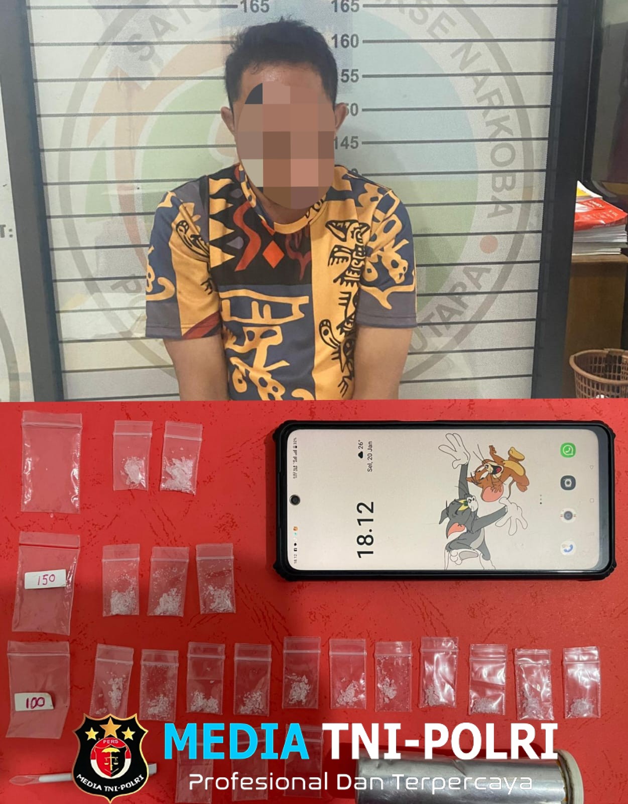 “Petugas berhasil mengamankan seorang tersangka yang diduga kuat terlibat dalam peredaran narkotika jenis sabu. Penangkapan dilakukan di rumah tersangka berikut barang bukti,” ujar AKP Budiarto.