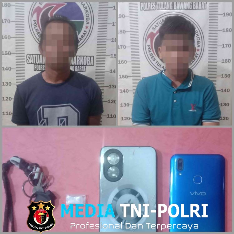 TULANG BAWANG BARAT // MEDIATNI-POLRI.COM / Satuan Reserse Narkoba (Satresnarkoba) Polres Tulang Bawang Barat, Polda Lampung berhasil mengamankan dua orang laki-laki yang diduga terlibat dalam penyalahgunaan narkotika jenis sabu.