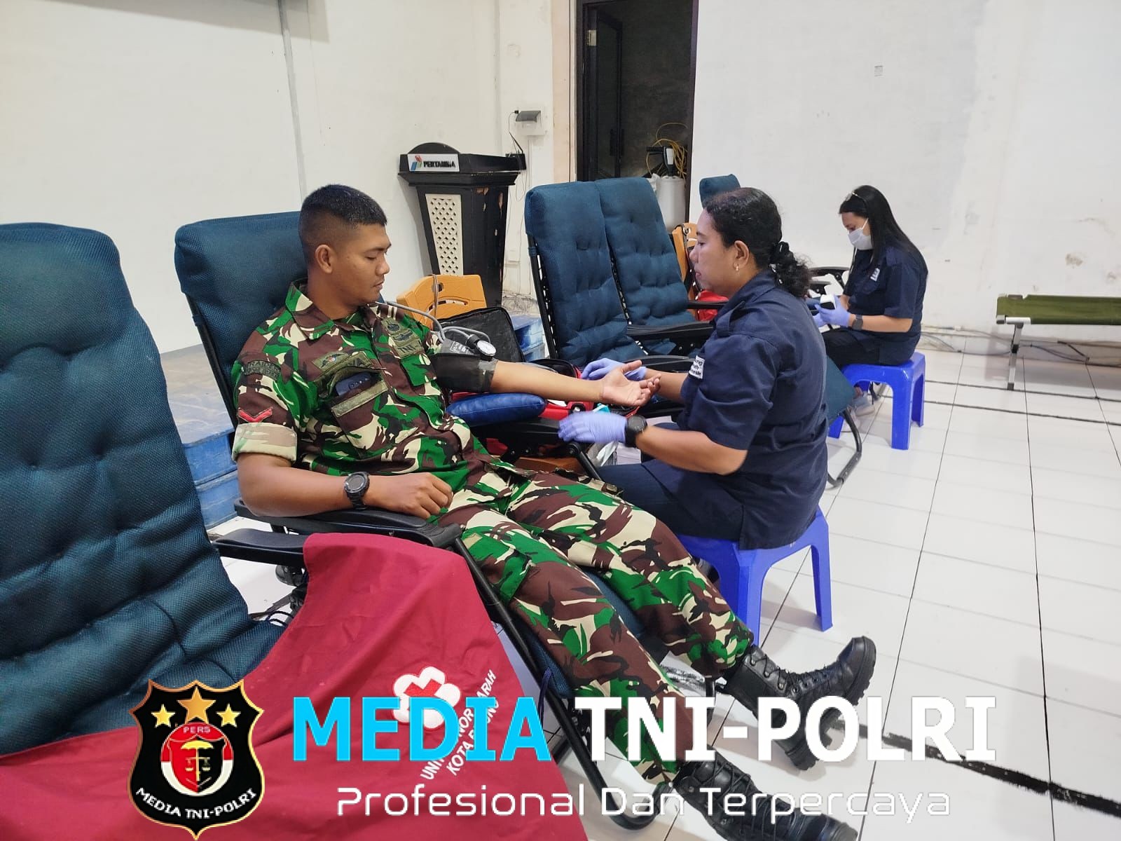 BITUNG // MEDIATNI-POLRI.COM / Dalam rangka memperingati Hari Ulang Tahun (HUT) PT. Pertamina (Persero) yang ke-68, personel Kodim 1310/Bitung menunjukkan aksi bakti sosial donor darah di bertempat di Aula PT. Pertamina (Persero) Fuel Terminal Bitung, Kel. Bitung Tengah Kec. Maesa Kota Bitung, Selasa (9/12/2025).