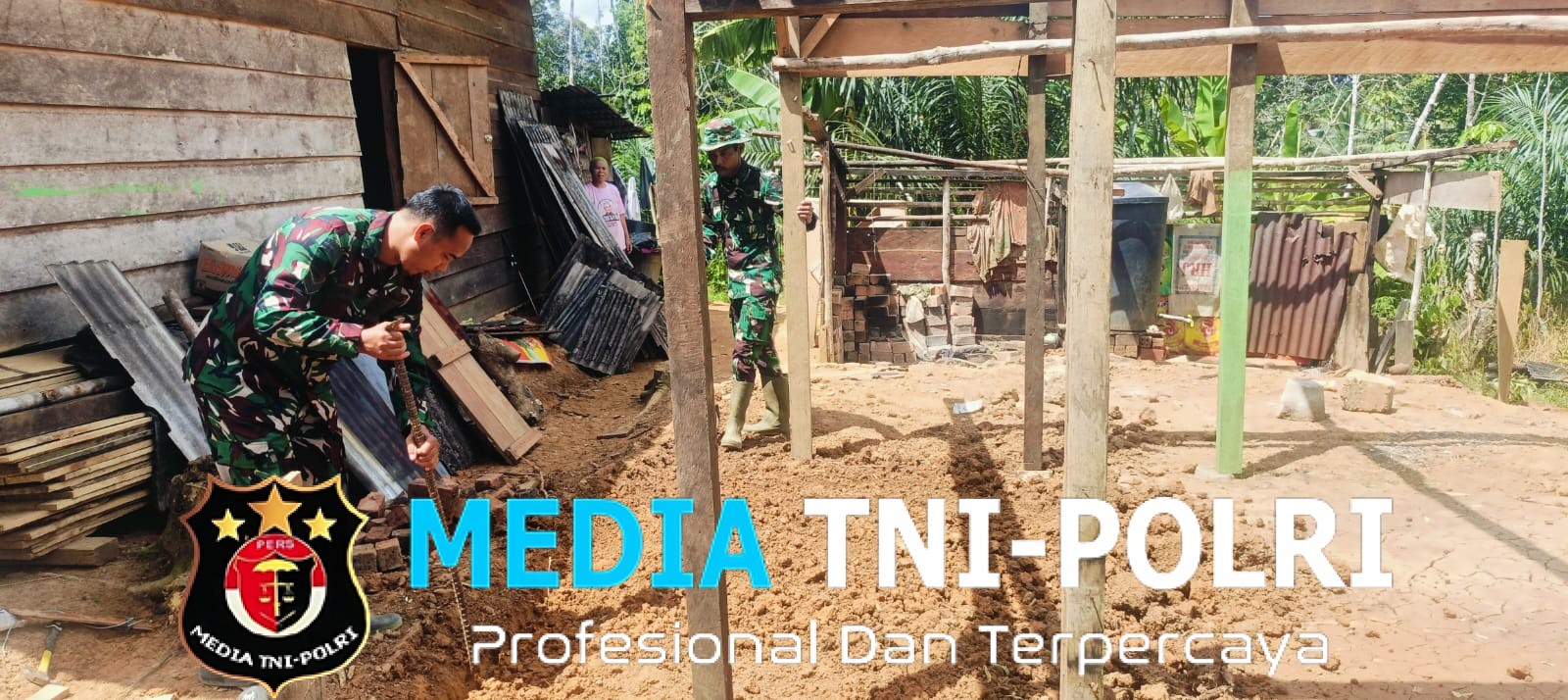 Sertu Ipungri yang turun tangan bersama anggota lainnya, bahu-membahu dengan masyarakat setempat.