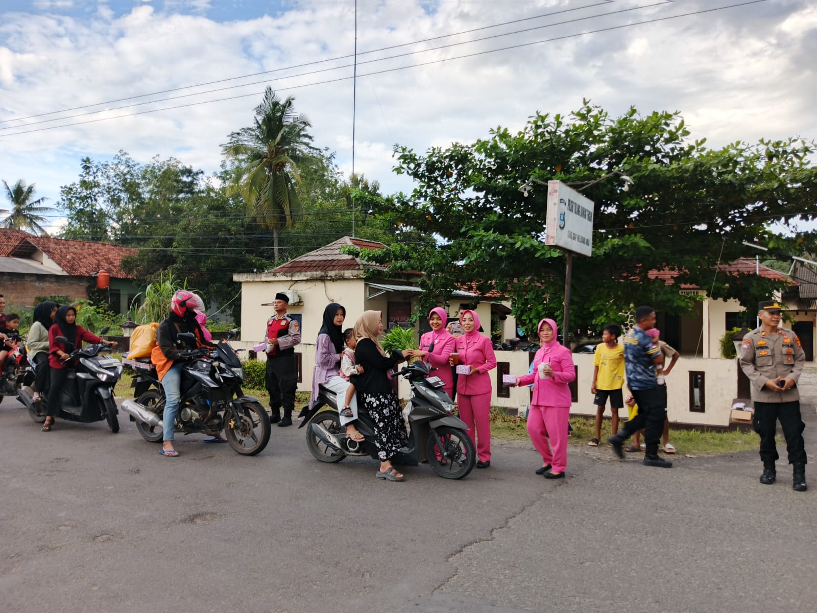 TULANG BAWANG BARAT // MEDIATNI-POLRI.COM / Kapolsek Tulang Bawang Tengah Polres Tubaba Kompol M Taufiq, S.H, M.H, beserta Pengurus Ranting Bhayangkari di bulan suci ramadhan menggelar kegiatan sosial pemberian takjil kepada Masyarakat pengguna Jalan yang melintas di depan Mako Polsek Tulang Bawang Tengah, Kamis (13/03/2025) Sore