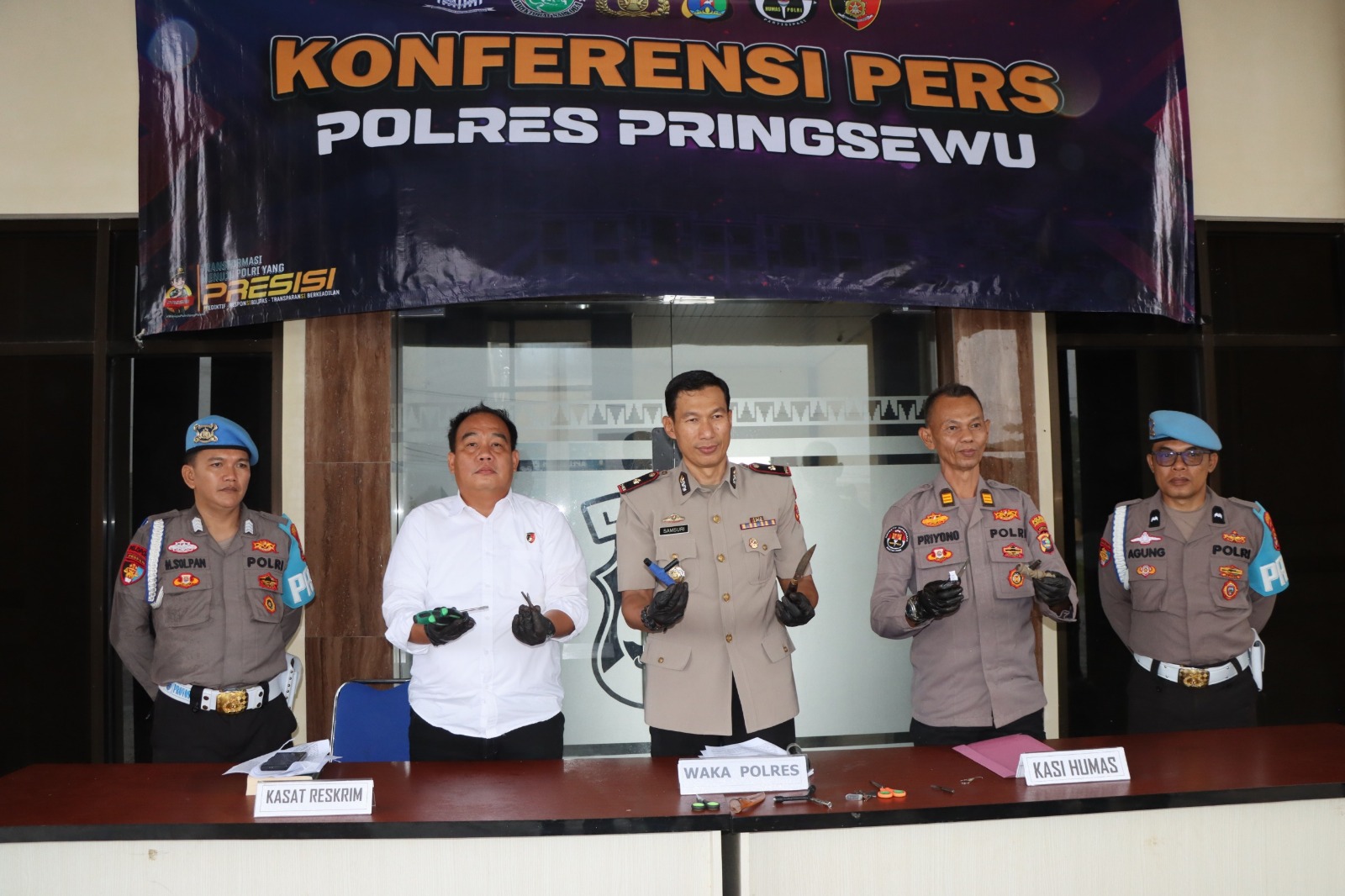 “Dalam penangkapan tersebut, polisi juga mengamankan dua pelaku lainnya, yakni Jam’an (43) dan Desi Anggiyani (26), yang keduanya merupakan warga Kabupaten Lampung Selatan,” ujar Kompol Samsuri dalam konfernesi Pes yang berlangsung di mapolres Pringsewu pada Senin (6/4/2026).