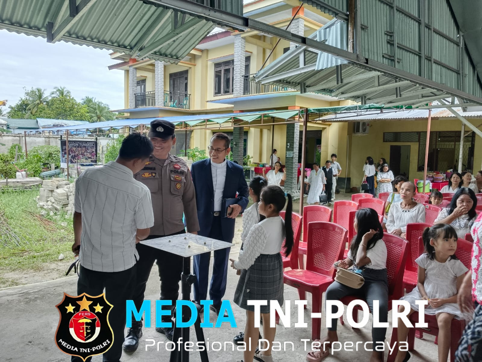 Dalam kegiatan tersebut Aipda R.O Nainggolan bertugas pengamanan di Gereja memberikan pesan kamtibmas kepada jemaat gereja,