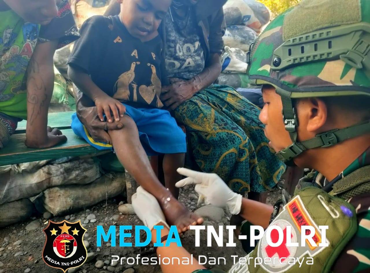 Dalam Pelayanan kesehatan yang diberikan oleh TNI di daerah Walesi atau sekitarnya, yang berfokus pada senyuman dan keramahan saat memberikan pelayanan medis kepada warga dan menggambarkan pelayanan kesehatan yang tulus dan penuh empati, seperti yang dilakukan oleh Satgas Pengamanan (Satgas) Yonif 521/DY.